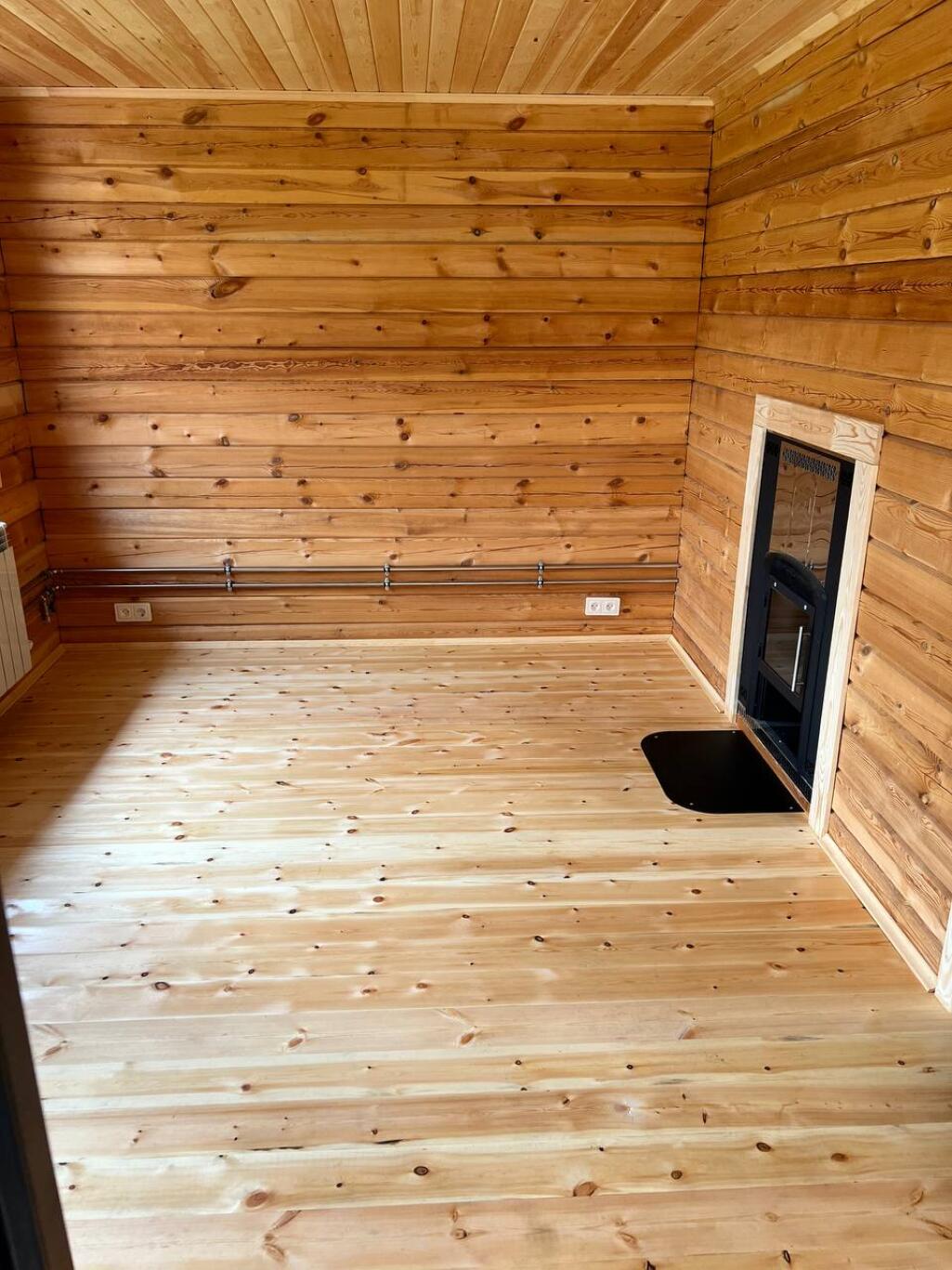 Чистовой пол в комнате отдыха и в парной - шпунтовая доска 27-30 мм (сосна, категории С).